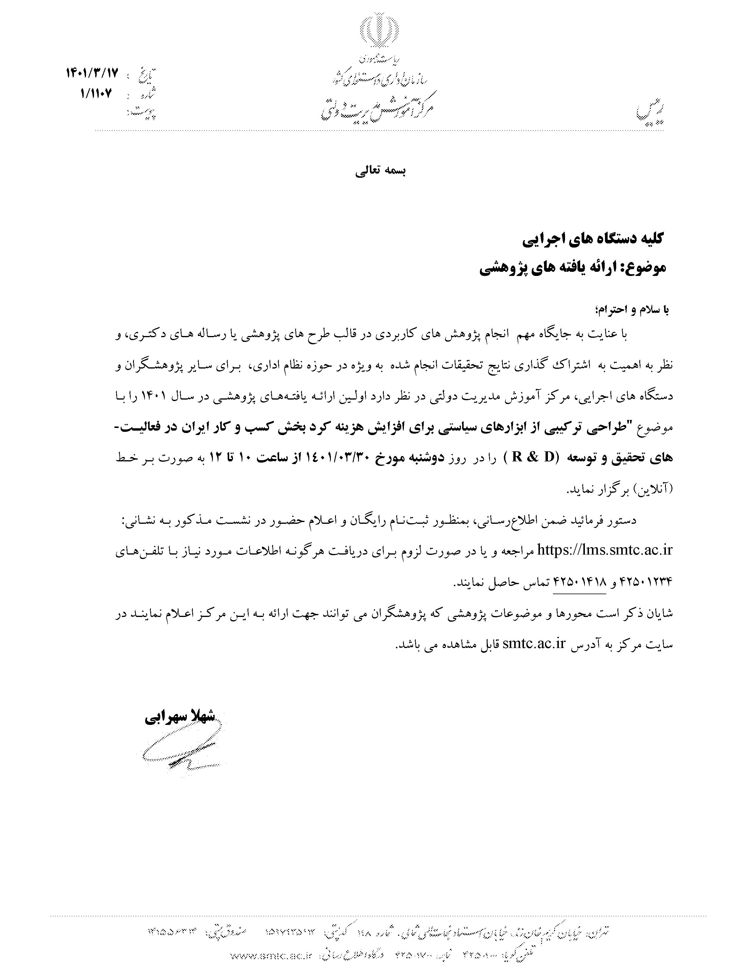 دعوت به نشست آنلاین طراحی ترکیبی از ابزارهای سیاستی برای افزایش هزینه کرد بخش کسب و کار - کد خبر : 55844 کپی کلمات کلیدی : دانشگاه علوم پزشکی تبریز معاونت تحقیقات و فناوری وزارت بهداشت، درمان و آموزش پزشکی نشست آنلاین