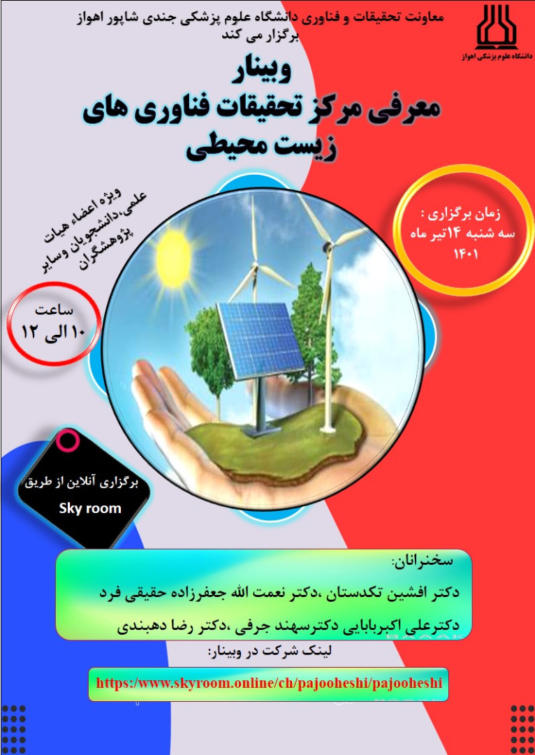 فراخوان وبینار معرفی مرکز تحقیقات فناوری های زیست محیطی دانشگاه علوم پزشکی جندی شاپور اهواز - کد خبر : 55861 کپی کلمات کلیدی : معاونت تحقیقات و فناوری علوم پزشکی اهواز وبینار