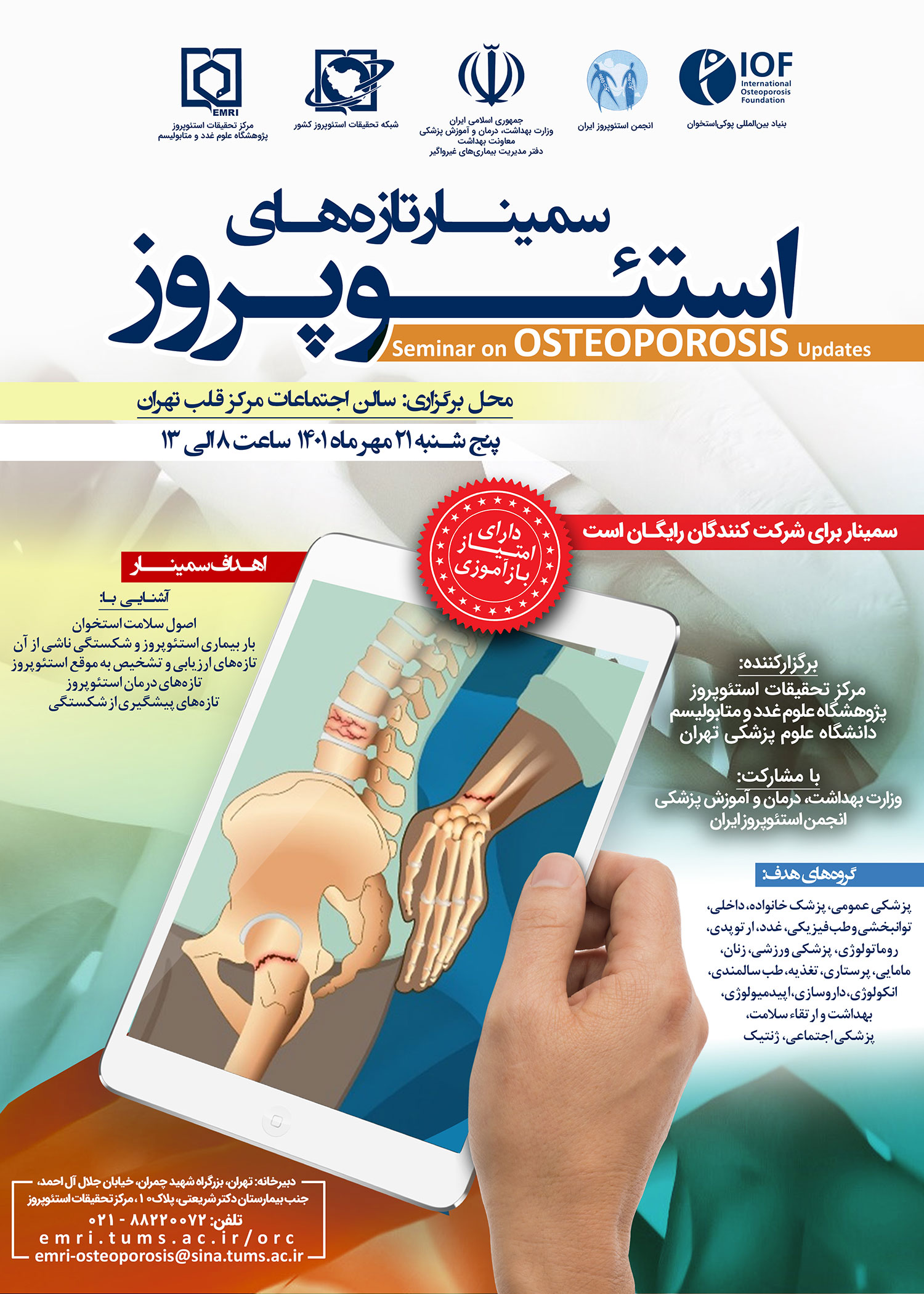 اطلاع رسانی سمینار تازه های استئوپروز 1401 دانشگاههای علوم پزشکی سراسر کشور - کد خبر : 55922 کپی کلمات کلیدی : سمینار فراخوان دانشگاه علوم پزشکی تهران