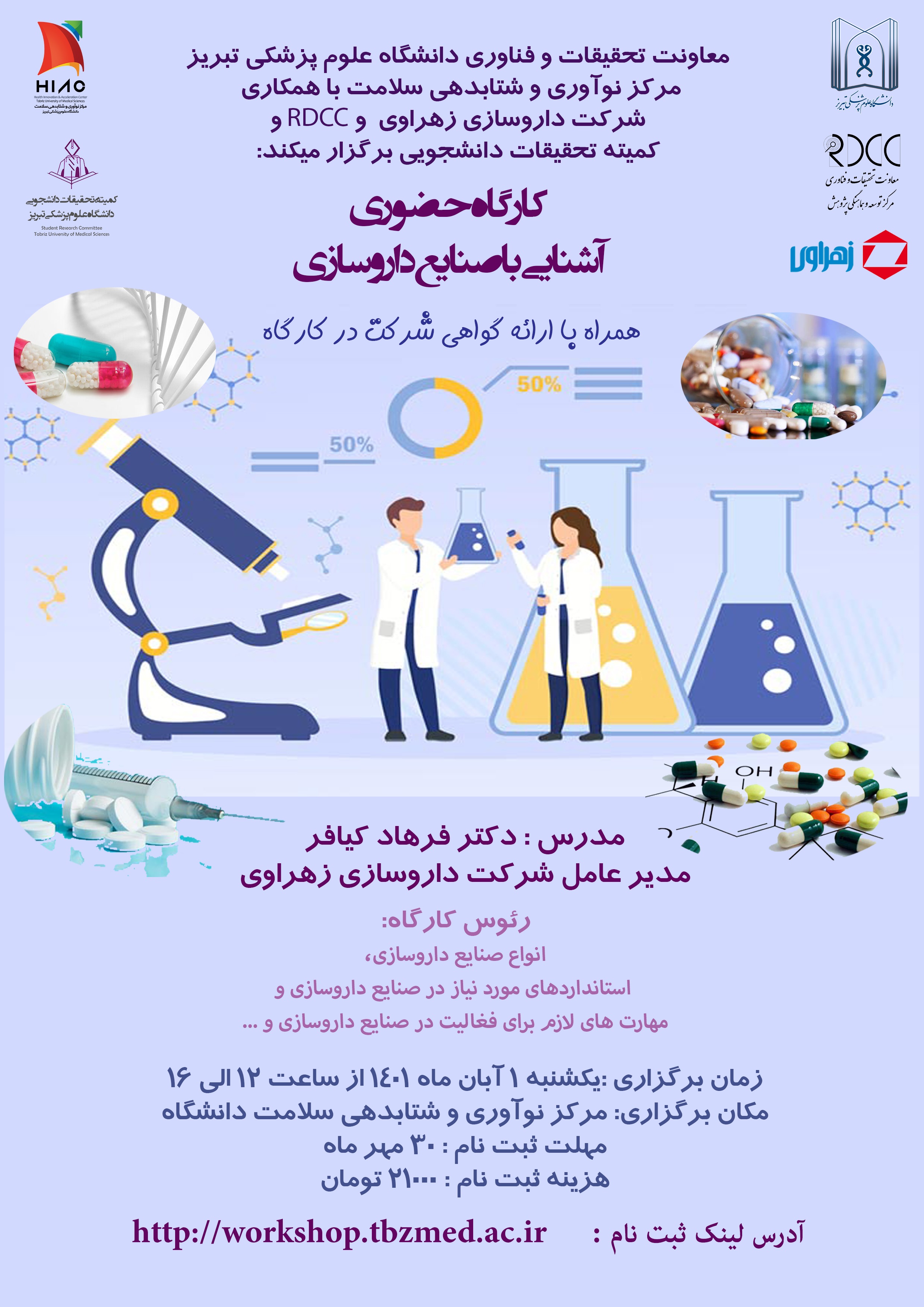 برگزاری کارگاه آموزشی حضوری " آشنایی با صنایع داروسازی" - کد خبر : 55931 کپی کلمات کلیدی : دانشگاه علوم پزشکی تبریز کارگاه آموزشی مرکز نوآوری شتابدهی