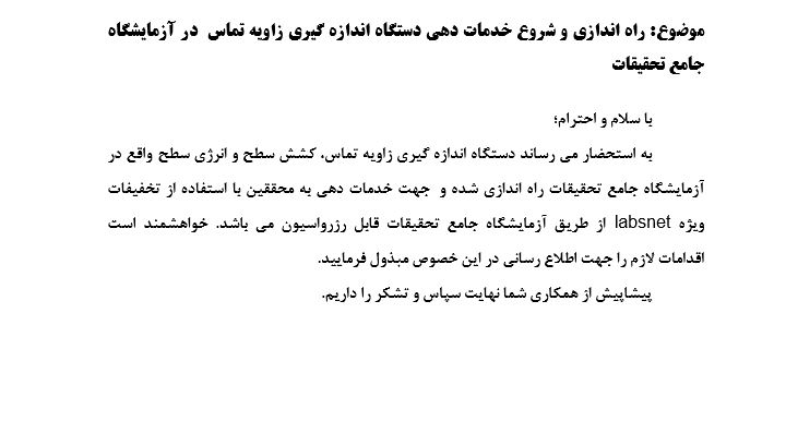 راه اندازی و شروع خدمات دهی دستگاه اندازه گیری زاویه تماس در آزمایشگاه جامع تحقیقات - کد خبر : 55954 کپی کلمات کلیدی : دانشگاه علوم پزشکی تبریز معاونت تحقیقات و فناوری آزمایشگاه جامع تحقیقات