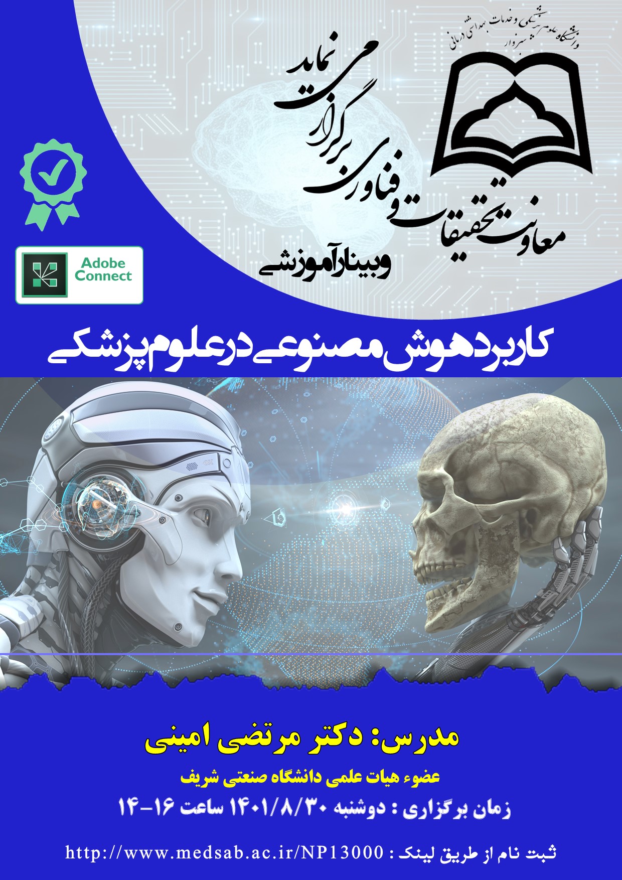 فراخوان وبینار کاربرد هوش مصنوعی در علوم پزشکی - کد خبر : 55955 کپی کلمات کلیدی : معاونت تحقیقات و فناوری هوش مصنوعی علوم پزشکی سبزوار