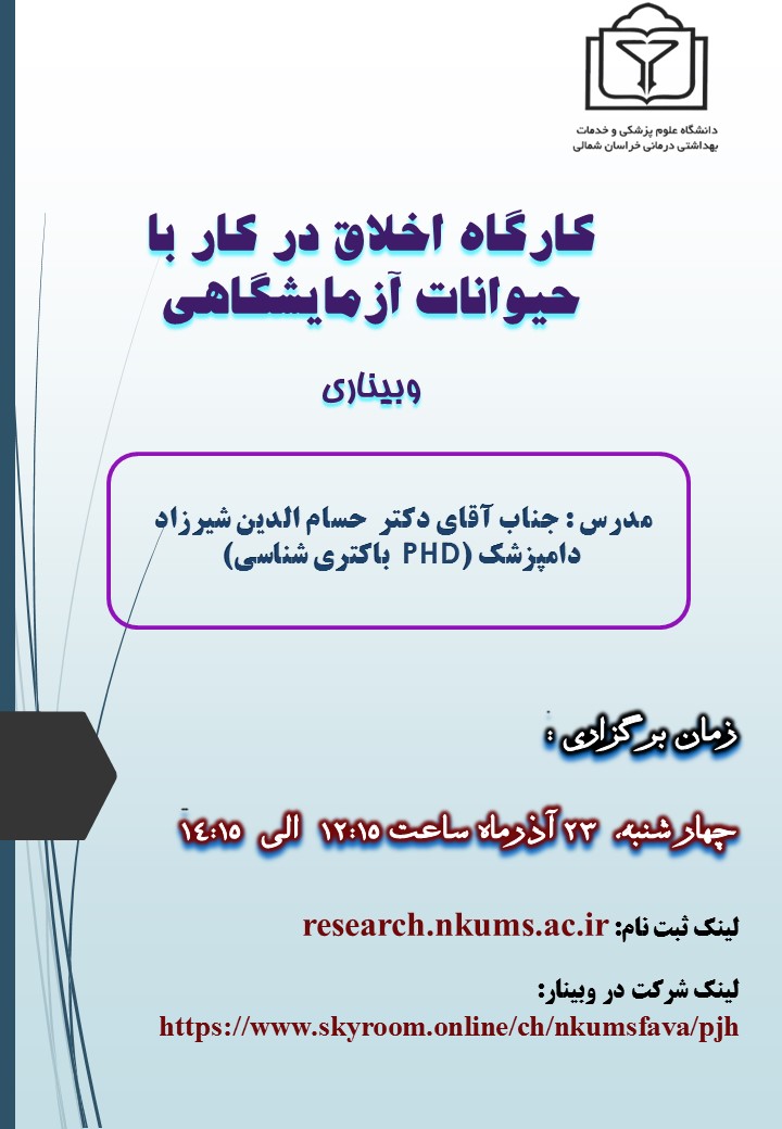 فراخوان کارگاه آموزشی اخلاق در کار با حیوانات آزمایشگاهی دانشگاه علوم پزشکی خراسان شمالی - کد خبر : 55985 کپی کلمات کلیدی : حیوانات آزمایشگاهی دانشگاه خراسان شمالی کارگاه آموزشی اخلاق
