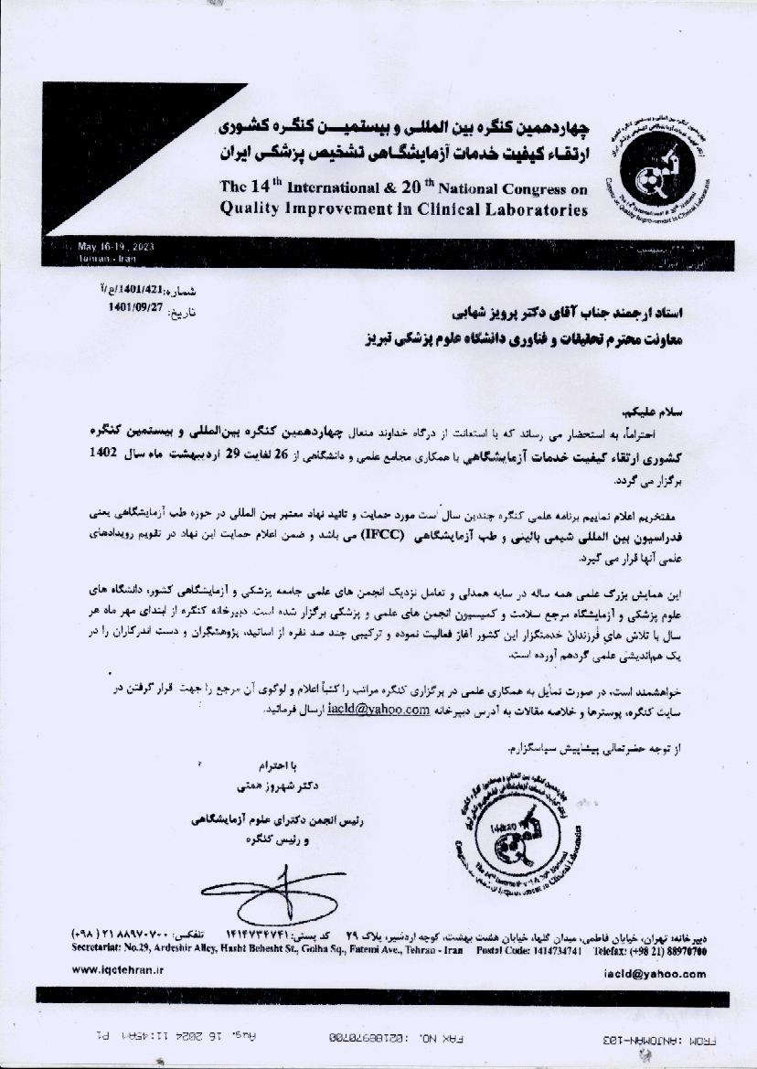 چهاردهمین کنگره بین المللی و بیستمین کنگره کشوری ارتقاء کیفیت خدمات آزمایشگاهی - کد خبر : 55999 کپی کلمات کلیدی : کنگره بین المللی معاونت تحقیقات و فناوری علوم آزمایشگاهی