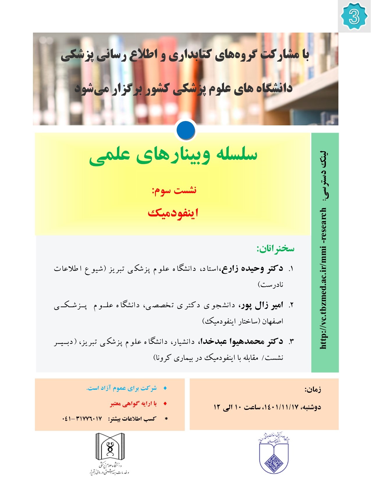 اطلاع رسانی وبینار علمی با موضوع «اینفودمیک» دانشگاه علوم پزشکی تبریز - کد خبر : 56014 کپی کلمات کلیدی : دانشگاه علوم پزشکی تبریز معاونت تحقیقات و فناوری وبینار علمی