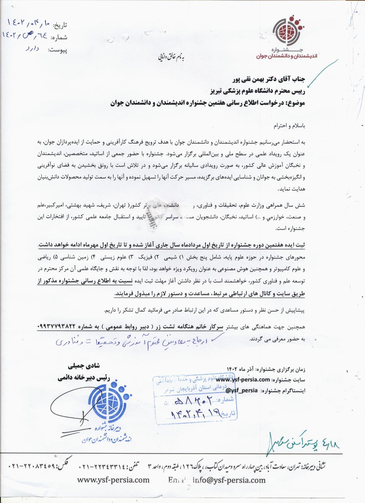 اطلاع رسانی هفتمین جشنواره اندیشمندان و دانشمندان جوان - کد خبر : 56092 کپی کلمات کلیدی : هفتمین جشنواره دانشکده داروسازی تبریز اندیشمندان دانشمندان جوان