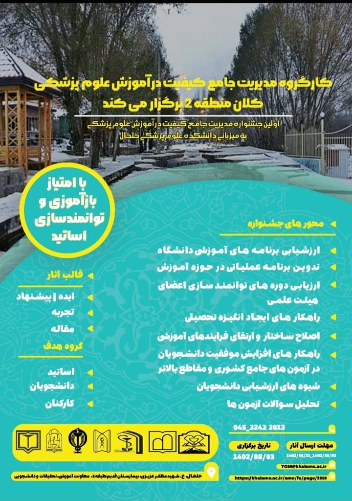 جشنواره یک روزه مدیریت جامع کیفیت در آموزش علوم پزشکی - کد خبر : 56106 کپی کلمات کلیدی : دانشگاه علوم پزشکی تبریز معاونت آموزشی EDC دانشکده_علوم پزشکی خلخال