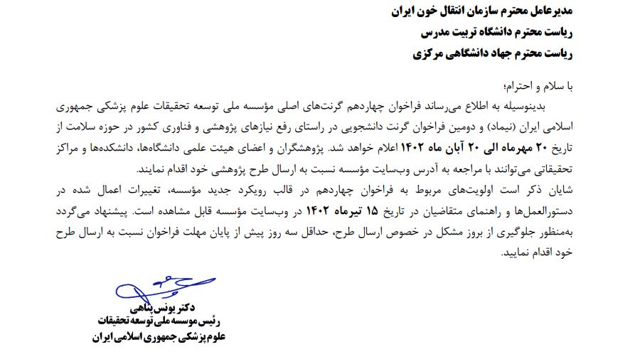 فراخوان چهاردهم گرنت اصلی و دومین فراخوان گرنت دانشجویی موسسه ملی توسعه تحقیقات پزشکی ایران - کد خبر : 56139 کپی کلمات کلیدی : معاونت تحقیقات و فناوری گرنت مؤسسه نیماد