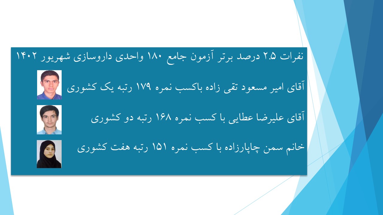 نفرات 2.5 درصد برتر آزمون جامع 180 واحدی داروسازی شهریور 1402 - کد خبر : 56176 کپی کلمات کلیدی : دانشگاه علوم پزشکی تبریز معاونت آموزشي دانشکده داروسازی تبریز آزمون جامع 180
