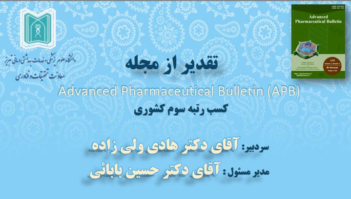 کسب رتبه سوم کشوری توسط مجله Advanced Pharmaceutical Bulletin به سردبیری آقای دکتر هادی ولی زاده و مسئولیت آقای دکتر حسین بابائی