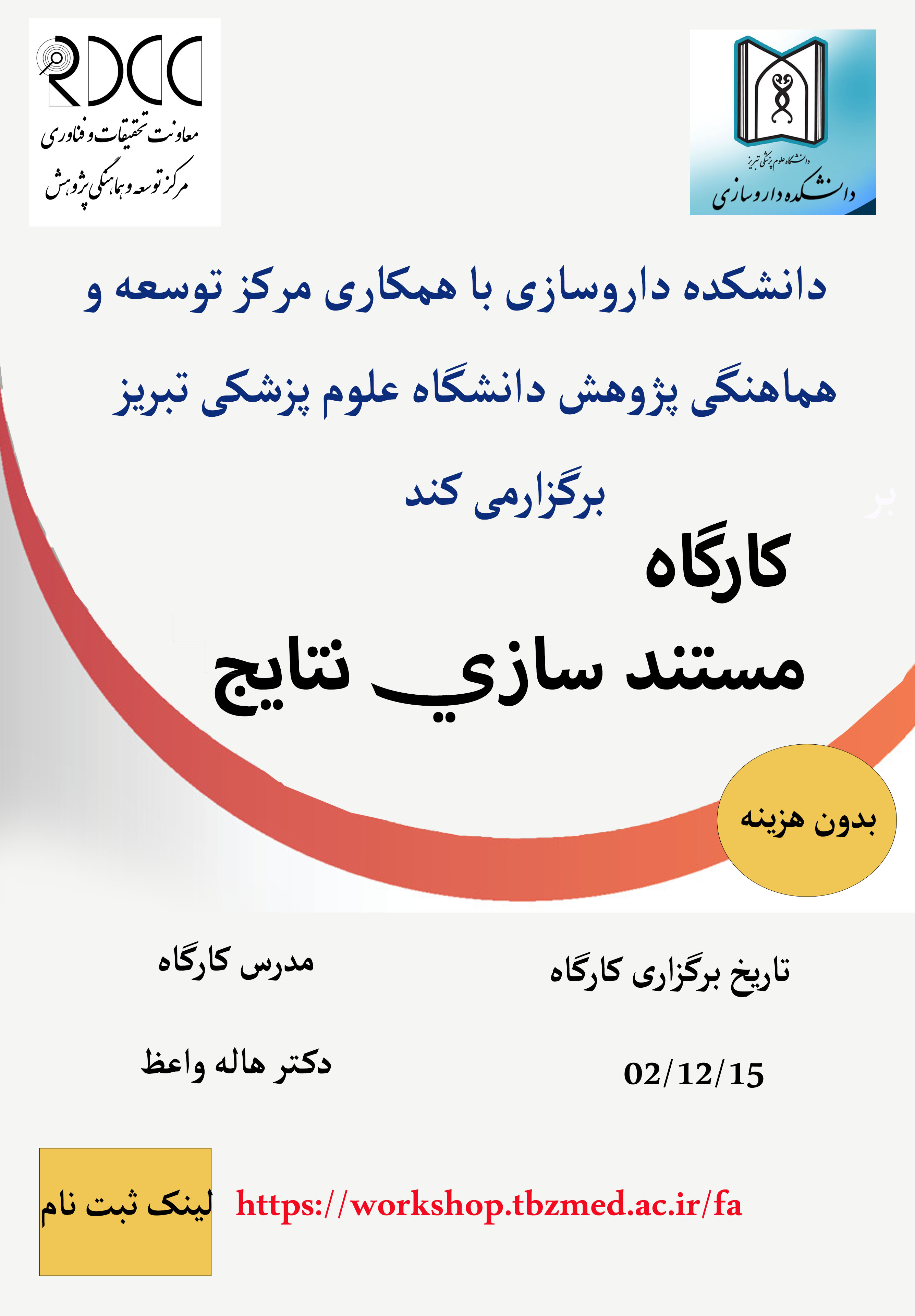 فراخوان کارگاه های پژوهشی دانشکده داروسازی با همکاری RDCC - کد خبر : 56238 کپی کلمات کلیدی : کارگاهها RDCC دانشکده داروسازی تبریز