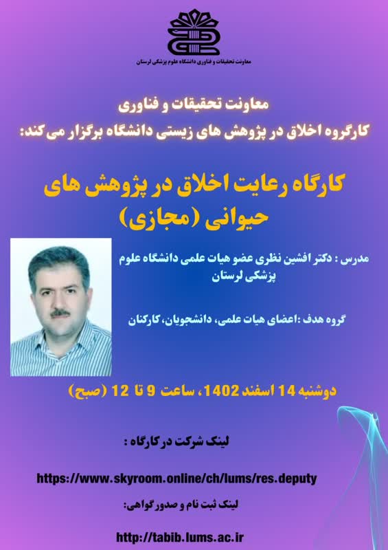 برگزاری کارگاه اخلاق در مطالعات حیوانی دنشگاه علوم...