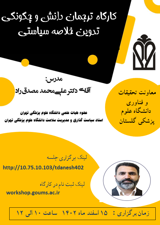 وبینار ترجمان دانش و چگونگی تدوین خلاصه سیاستی دانشگاه علوم پزشکی گلستان - کد خبر : 56244 کپی کلمات کلیدی : معاونت تحقیقات و فناوری علوم پزشکی گلستان وبینار ترجمان دانش