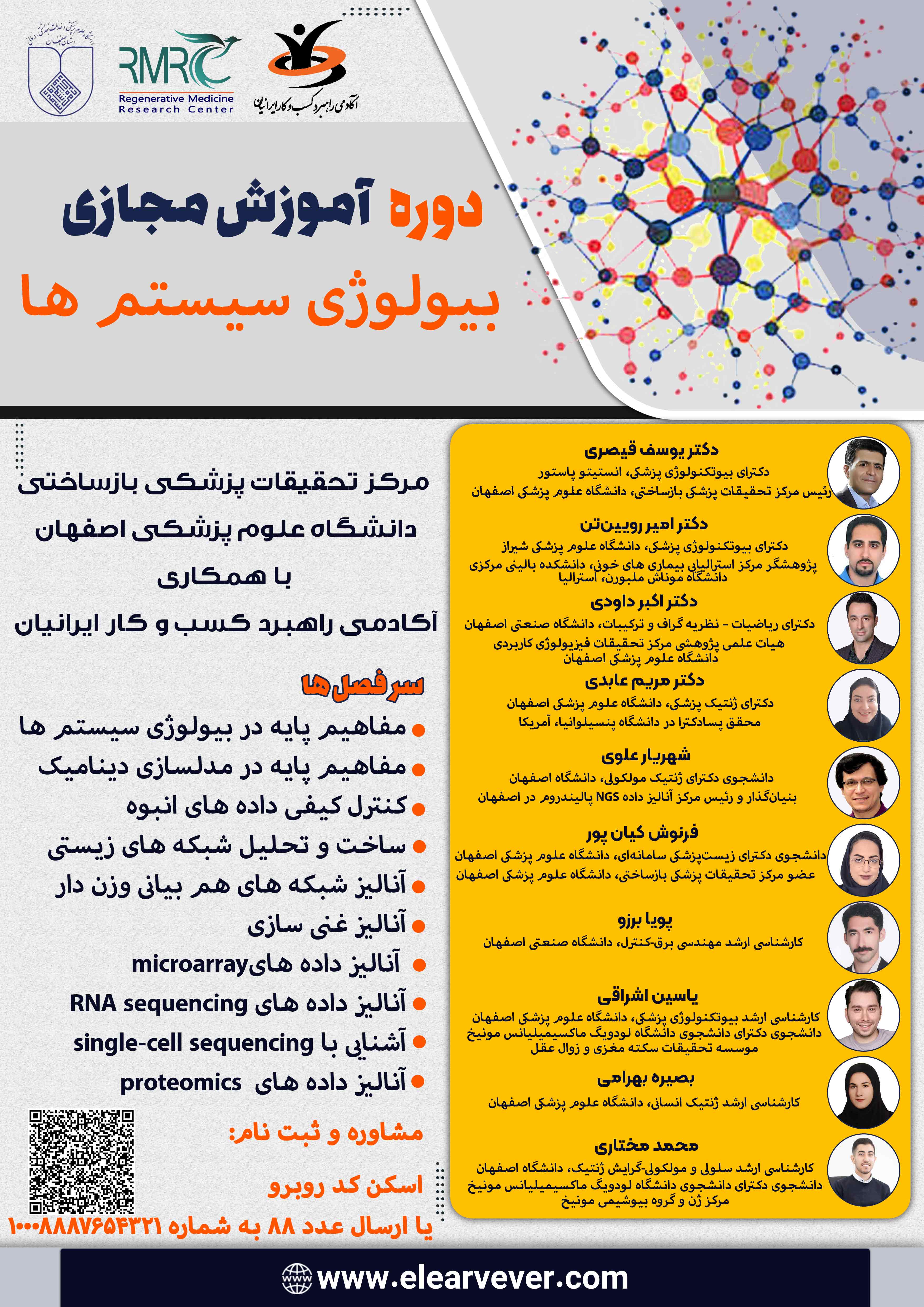 اطلاع رسانی برگزاری "آموزش مجازی بیولوژی سیستم ها" دانشگاه علوم پزشکی و خدمات بهداشتی درمانی اصفهان