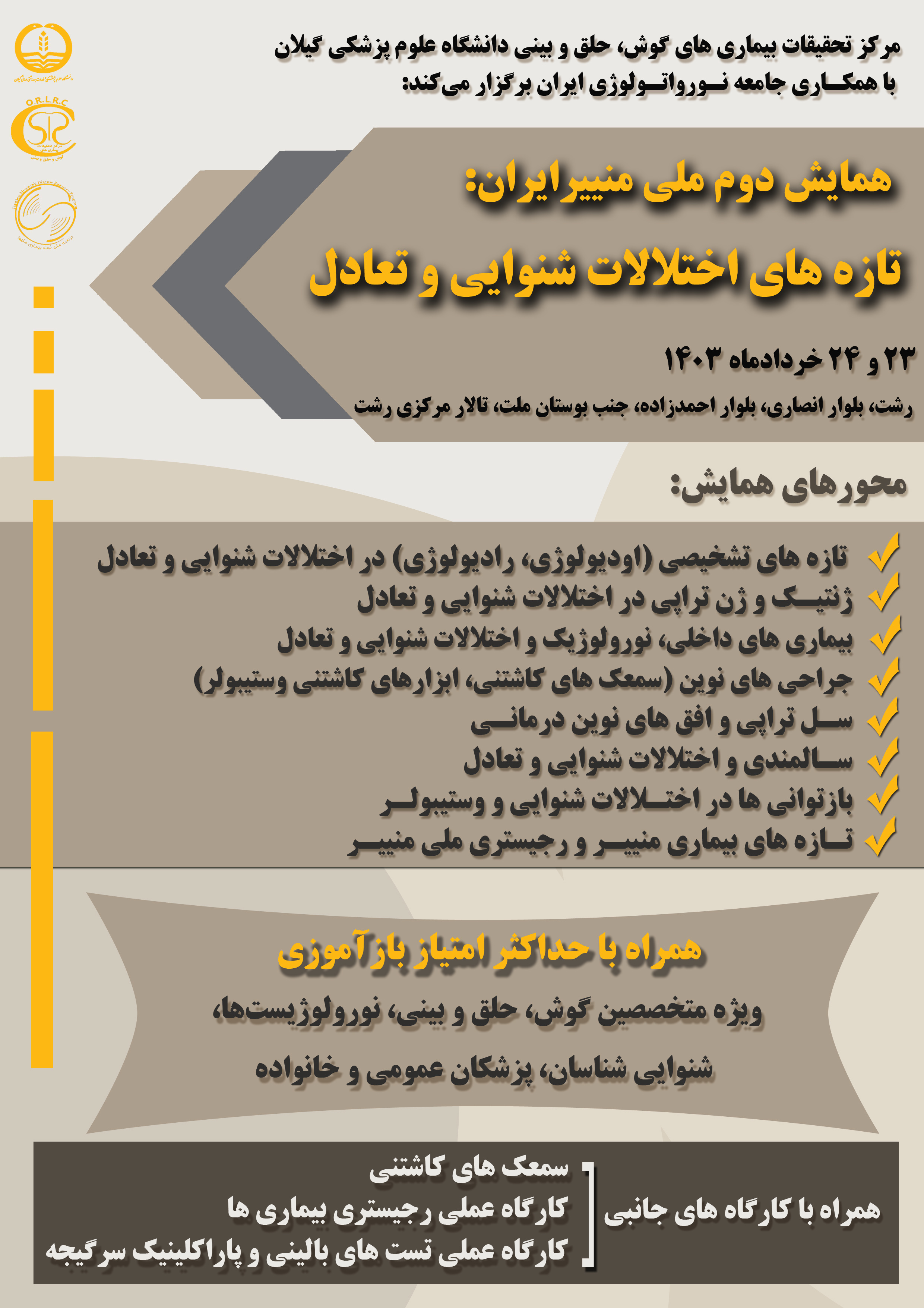 فراخوان پذیرش چکیده مقاله انگلیسی در دومین کنگره ملی منییر ایران: تازههای اختلالات شنوایی و تعادل