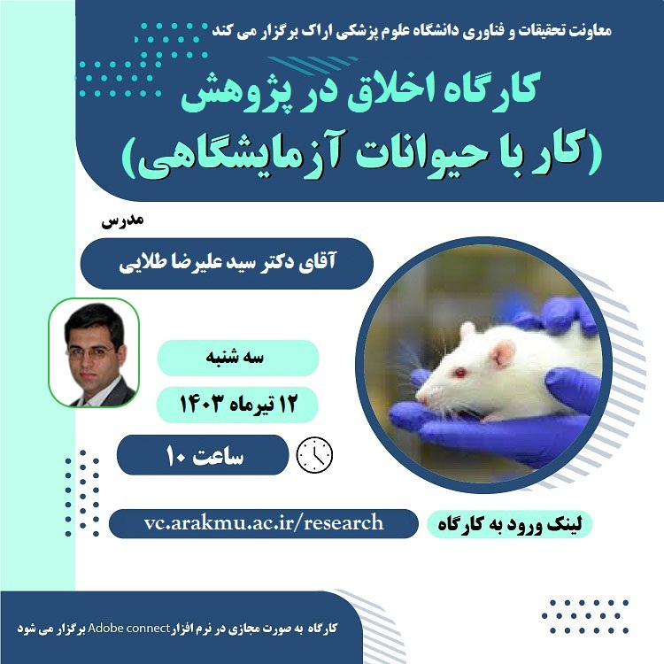 برگزاری کارگاه اخلاق و ملاحظات کار با حیوانات آزمایشگاهی دانشگاه علوم پزشکی استان مرکزی - کد خبر : 56286 کپی کلمات کلیدی : کارگاه اخلاق حیوانات آزمایشگاهی استان مرکزی