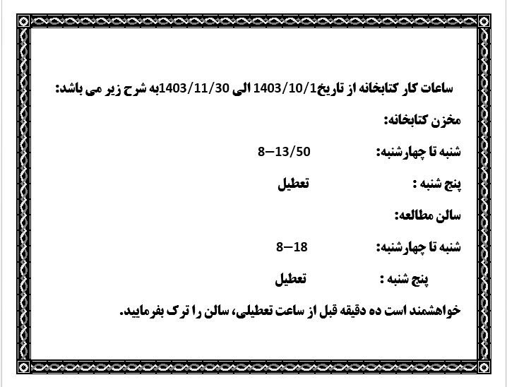 اعلام ساعت کاری جدید کتابخانه - کد خبر : 56372 کپی کلمات کلیدی : دانشگاه علوم پزشکی تبریز دانشکده داروسازی تبریز کتابخانه داروسازی