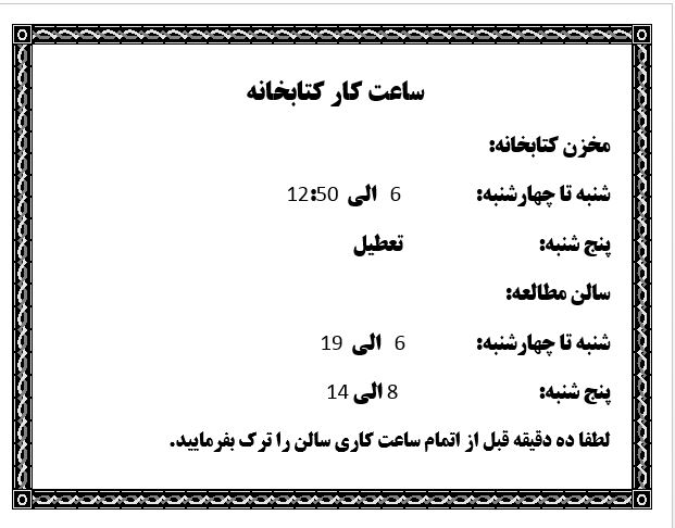 ساعت کاری کتابخانه دانشکده در ایام امتحانات - کد خبر : 56436 کپی کلمات کلیدی : دانشگاه علوم پزشکی تبریز ساعات کار کتابخانه دانشکده داروسازی تبریز