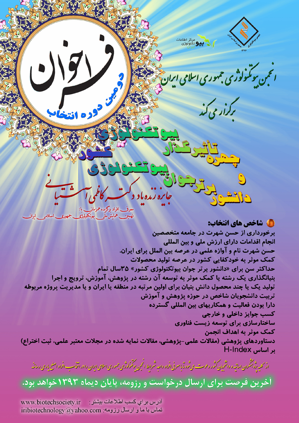 فراخوان دومین دوره انتخابات انجمن بیوتکنولوژی جمهوری اسلامی ایران