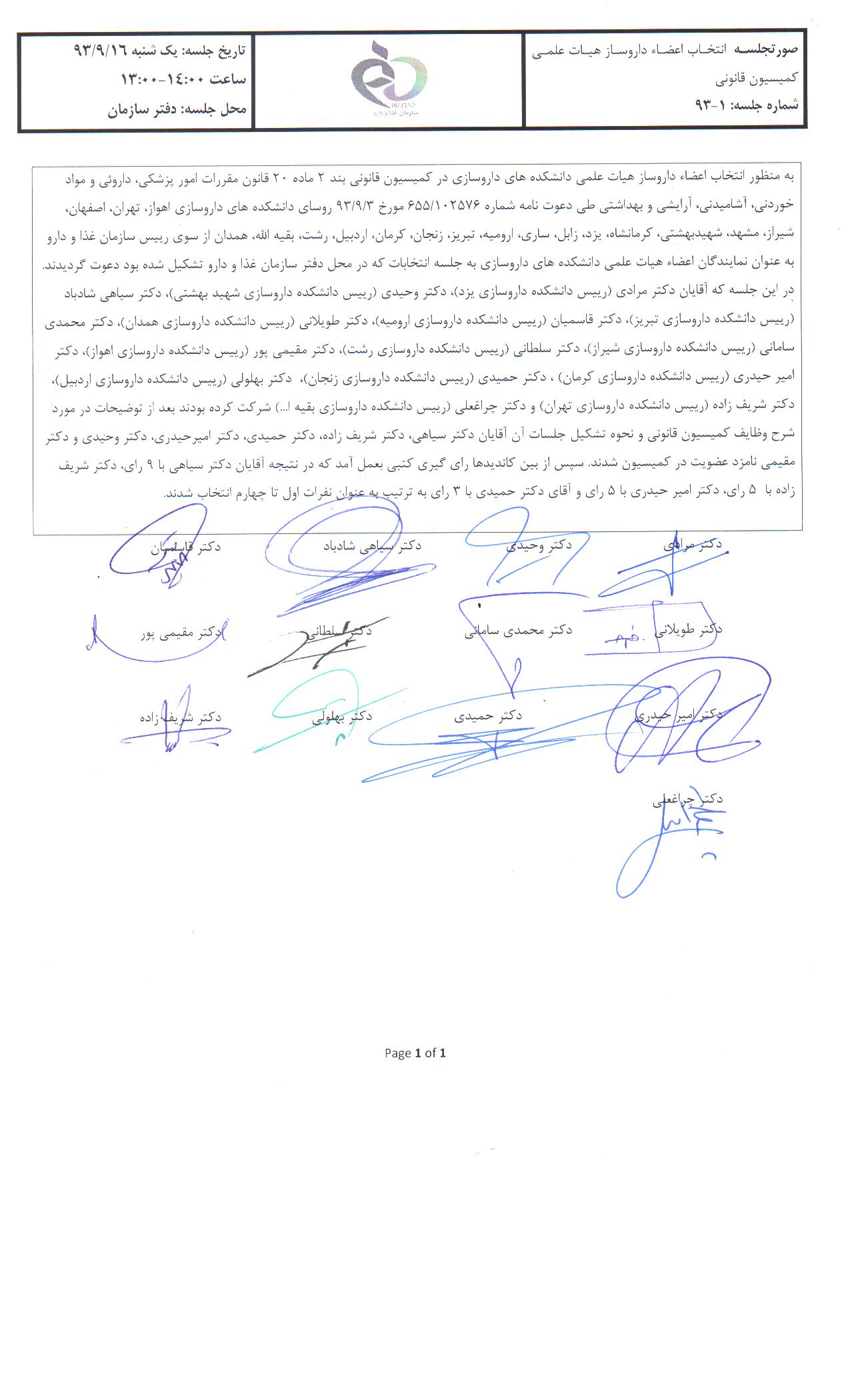 انتصاب جناب آقای دکتر محمدرضا سیاهی به عنوان عضو کمسیون "ساخت و ورود هر نوع دارو و مواد بیولوژیک"
