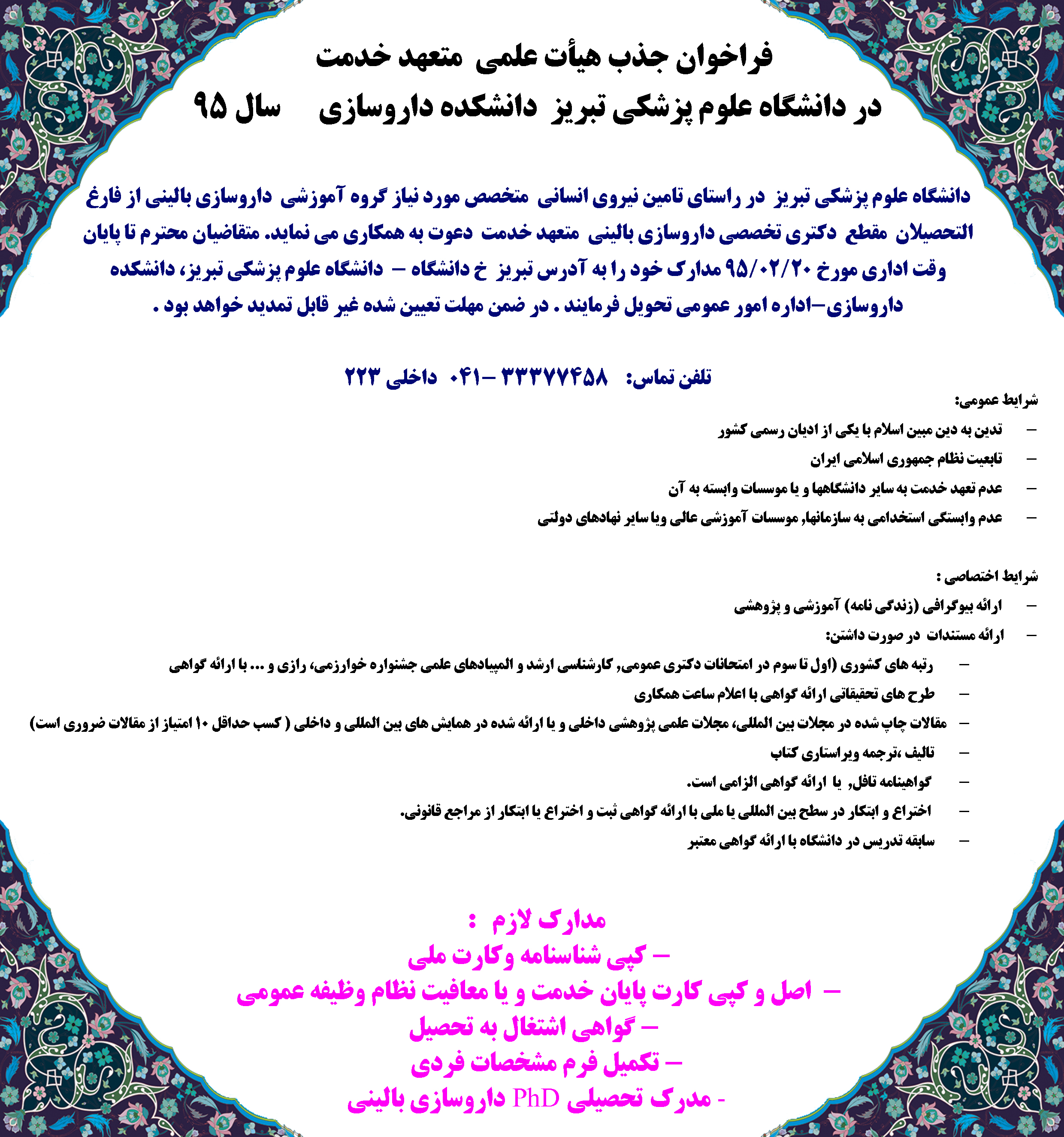 فراخوان جذب هیات علمی متعهد به خدمت داروسازی بالینی